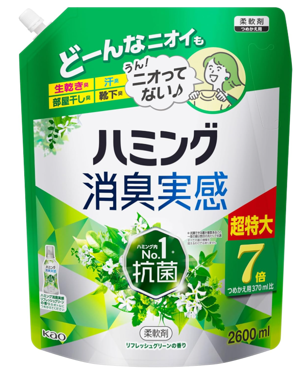 ハミング 【大容量】消臭実感 柔軟剤 つめこみ洗いも、部屋干しも、無敵消臭! 内No.1抗菌 リフレッシュグリーンの香り つめかえ用 2,600ml