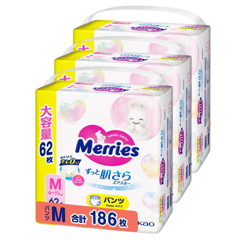 【Amazon.co.jp限定】【パンツ Mサイズ】 メリーズずっと肌さらエアスルー (6~11kg)186枚 (62枚×3) [ケース品]