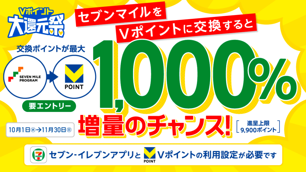 【2025年10月】Vポイント大還元祭&セブンマイル交換増量キャンペーンまとめ