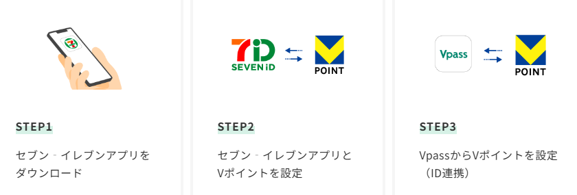 2.「セブン‐イレブンアプリとVポイントの設定」+「VpassからVポイント設定(ID連携)」
