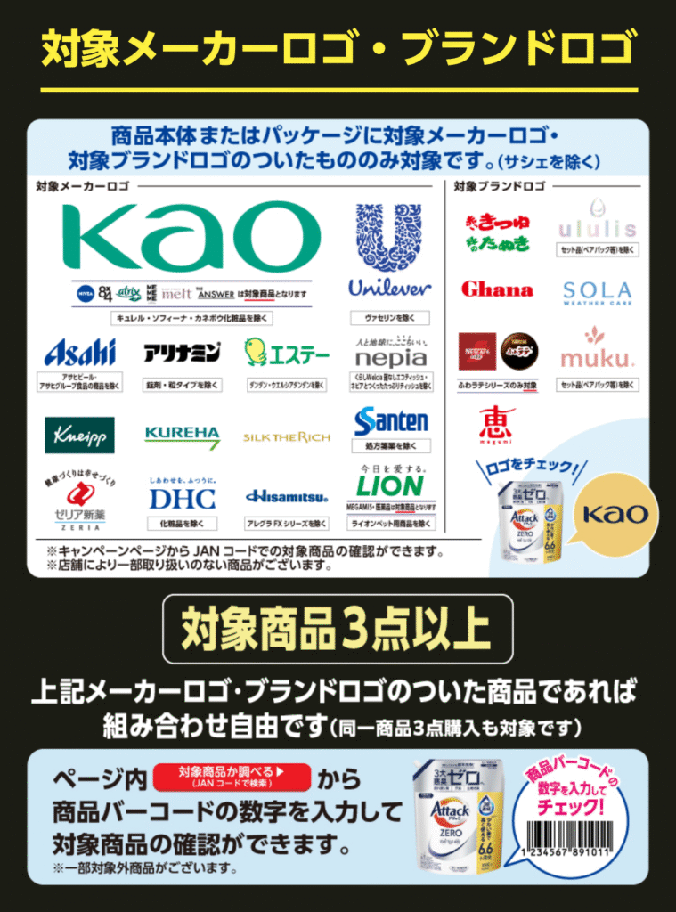 オンライン購入や通販は対象外です。必ず店頭で購入してください。