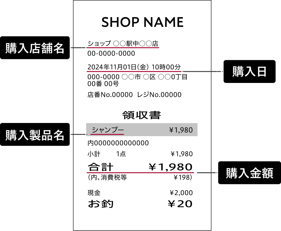 - レシートの【購入製品名】にマーカー等で印がついていない