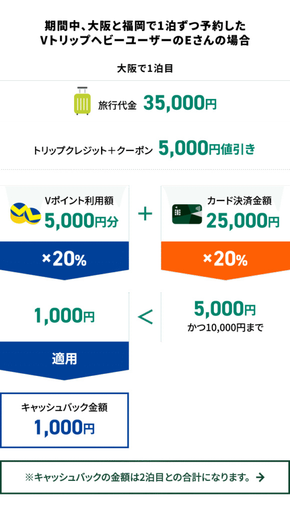 対象期間中に【Vトリップ】でホテル予約し、Vポイントを使って支払いをすると、