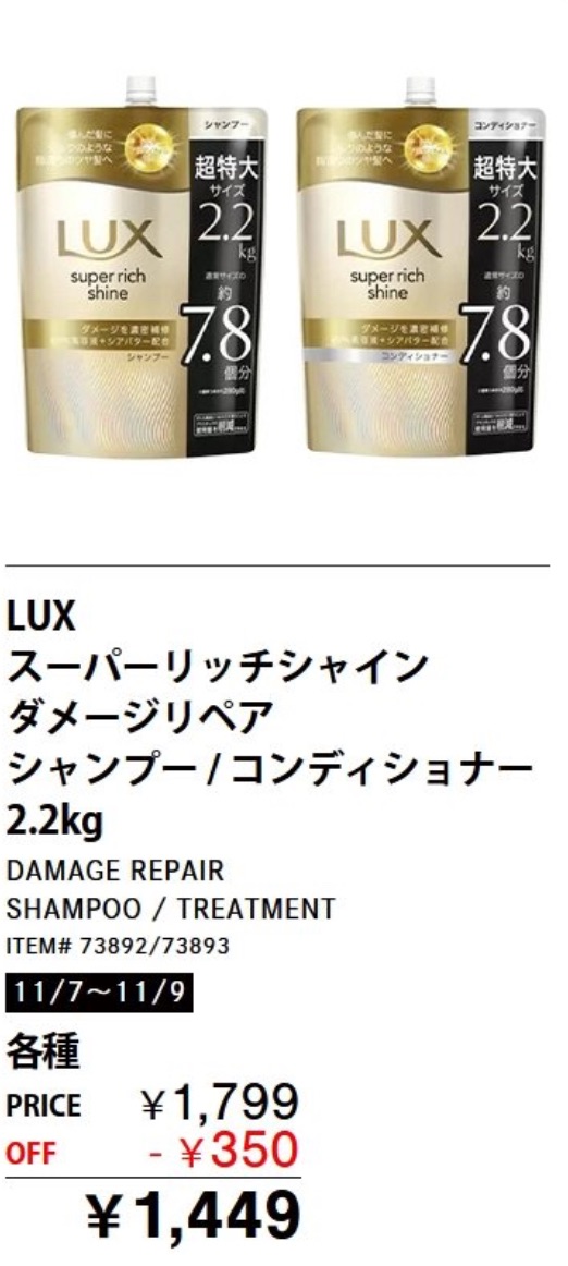 - LUX スーパーリッチシャイン シャンプー/コンディショナー 2.2kg