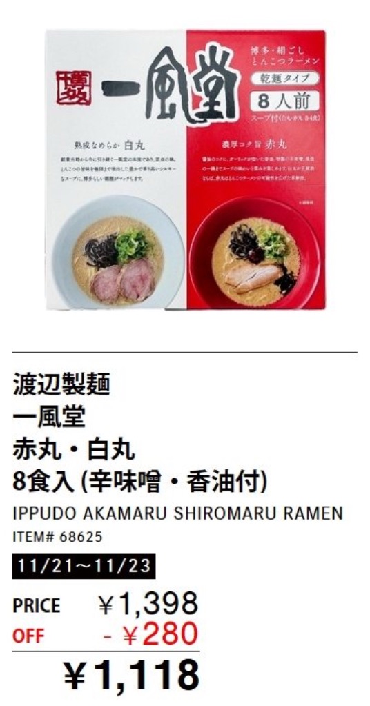 - 渡辺製麺 一風堂 赤丸・白丸 8食入(辛味噌・香油付)