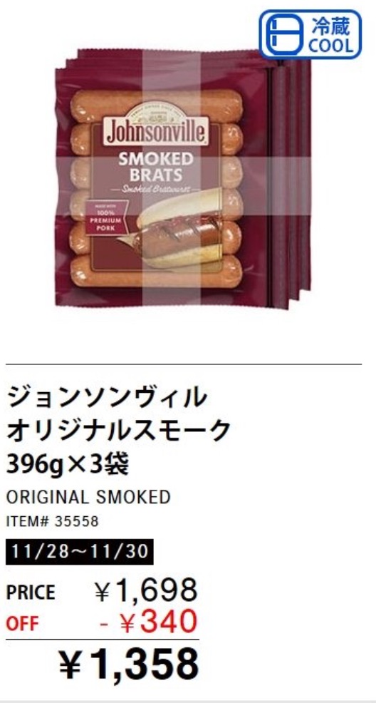 ジョンソンヴィル オリジナルスモーク 396g×3袋