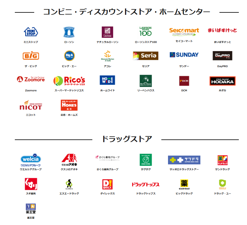 AEON Pay・WAONマークのあるお店。画像は一部店舗です(※詳しくは公式サイトにてご確認ください)