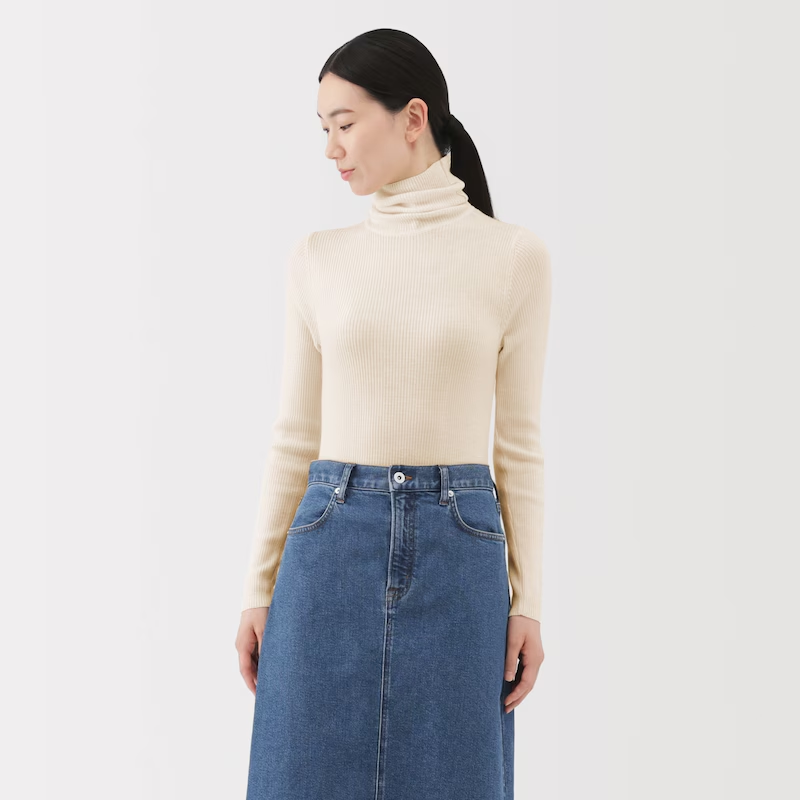 婦人|洗えるウールハイゲージリブタートルネックセーター